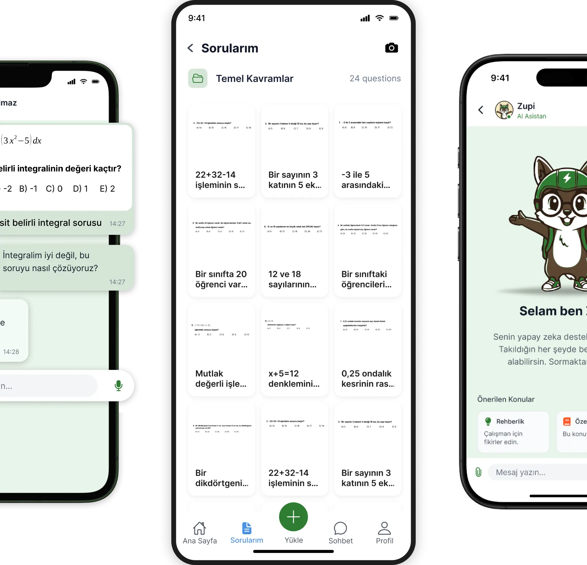 Sorularını biriktir, arkadaşlarınla çöz, AI asistanın Zupi’yle asla cevapsız kalma. Kaydedersen unutulmaz, paylaşırsan çözülür.